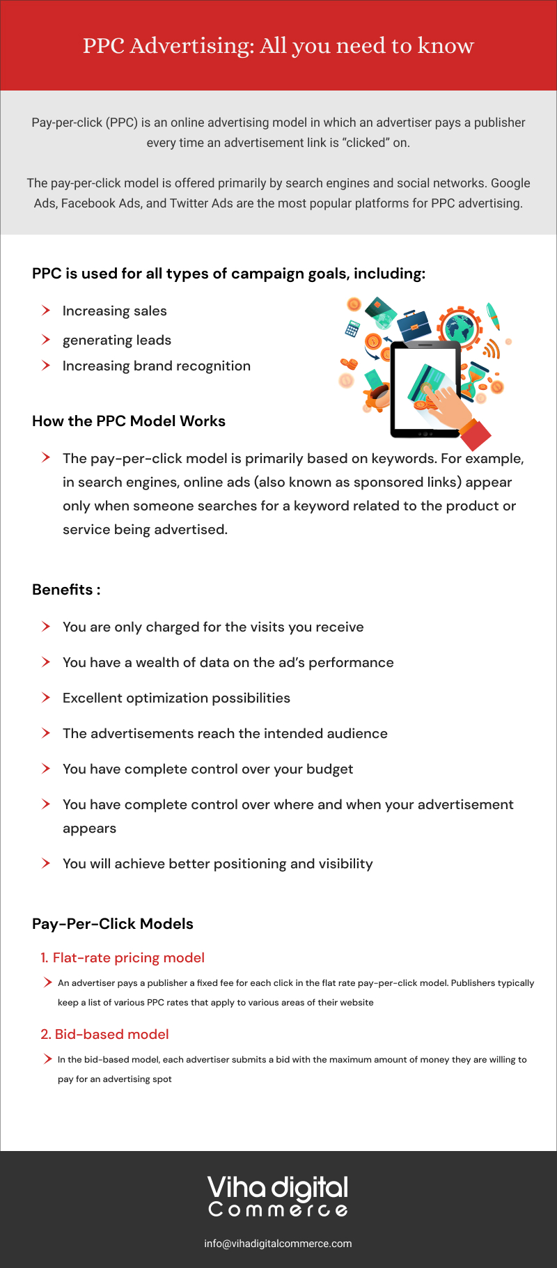 Call us now at info@vihadigitalcommerce.com and get details about the diverse PPC packages offered by us.
